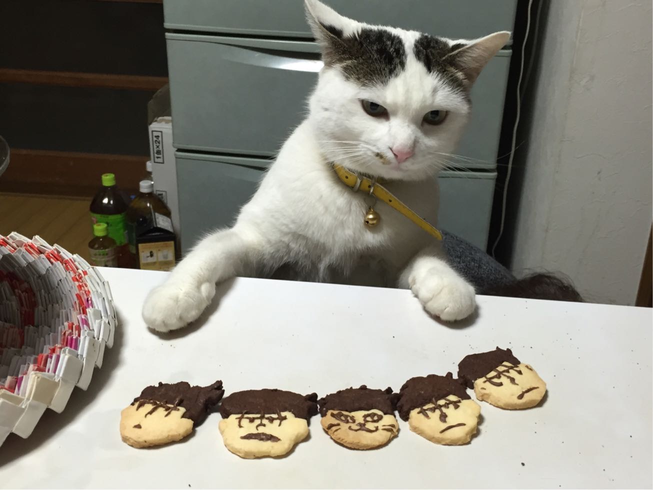 とでも言いたげな一松クッキーを前にした猫の反応